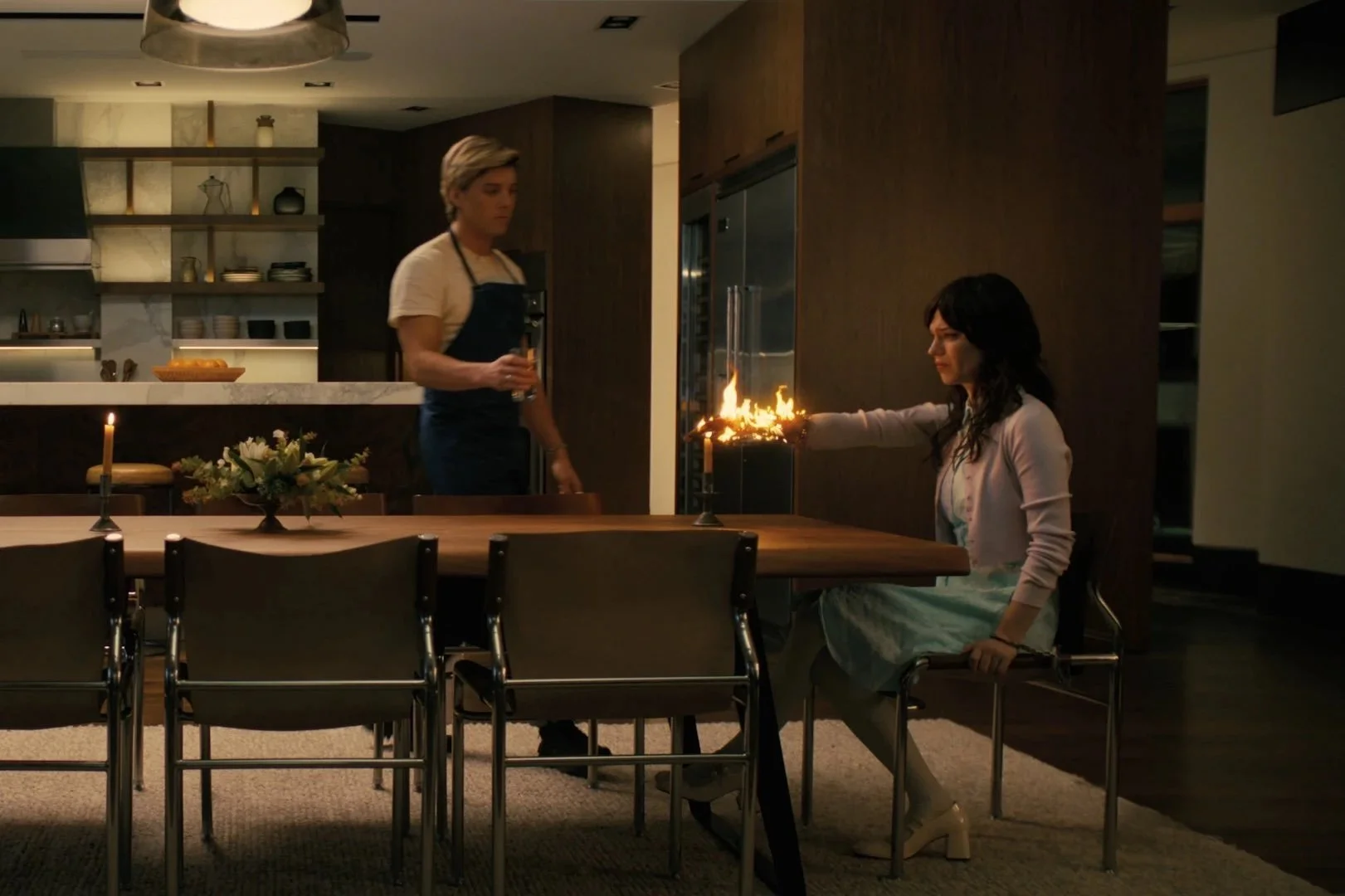 Sophie Thatcher plays Iris and I loved seeing how she went from playing this loving girlfriend to this confused robot to this robot who was going to get revenge but trust me when I say she deserved to get revenge. The plot twist of finding out that she was a robot caught me way off guard and then made me realize that the entire situation was planned. There is a scene I've seen posted online of her covered in blood which in the movie we find out is after she killed Sergei. I honestly thought that scene was way later in the film only to find out that it was pretty early on and that was just the start of things. I loved to see her make smart moves and make sure that Josh wouldn't get away with what he was doing. In the end, she just wanted to be free, and I'm glad that she did and didn't have to deal with Josh coming after her.